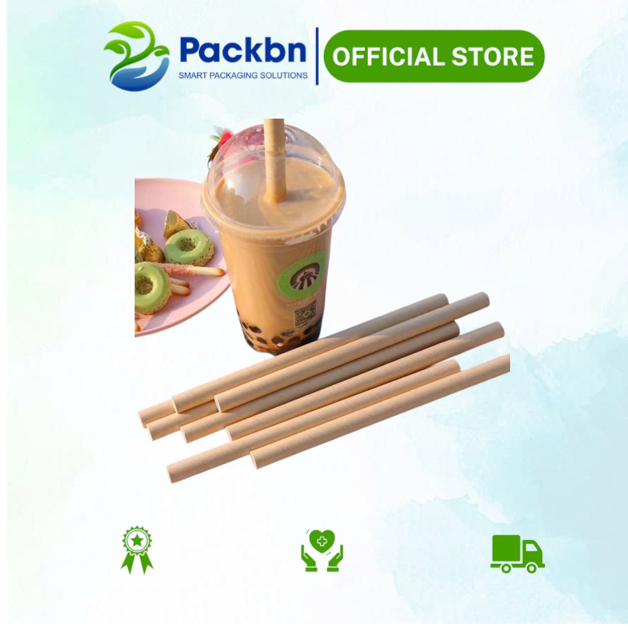 - Ống hút giấy phi 10mm, phi 12mm dùng cho thức uống có hạt như trà sữa, topping…